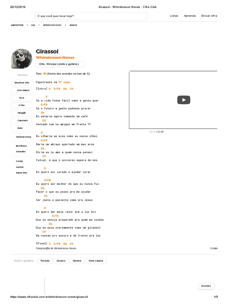 Girassol Whindersson Nunes Cifra Club Youtube Entretenimento Geral - Por favor clique no titulo da musica para ver o restante da cifra.