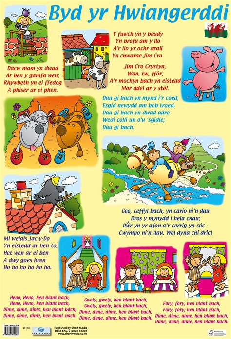 Kids Height Chart Wall Drone Fest - Dacw mam yn dwad ar ben y gamfa wen rhywbeth yn ei phoced a phiser ar ei phen y fuwch yn y beudy yn brefu am y llo a'r llo yr ochor arall yn gwaeddi jim cro jim cro crystun wan a tw a ffor a mochyn bach yn eistedd mor ddel ar y stol.
